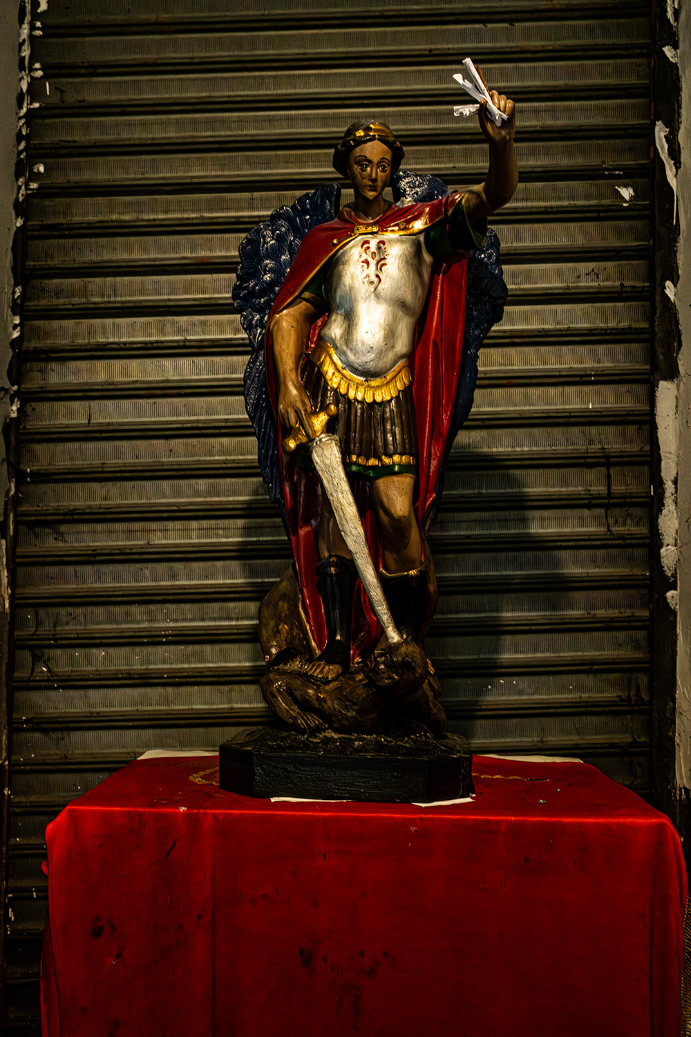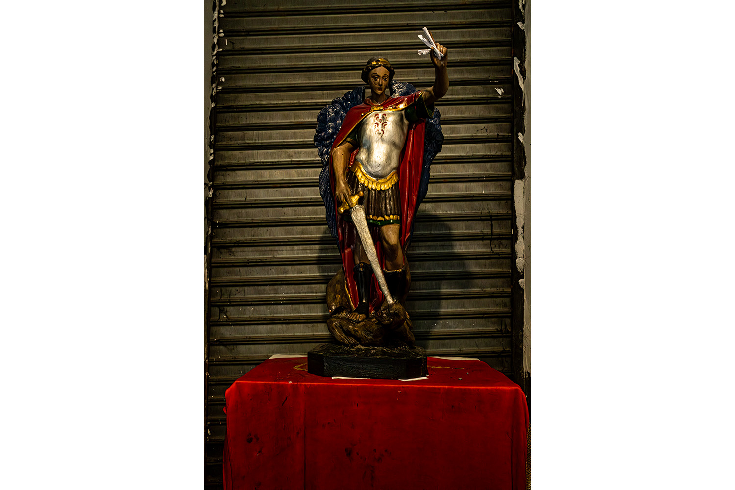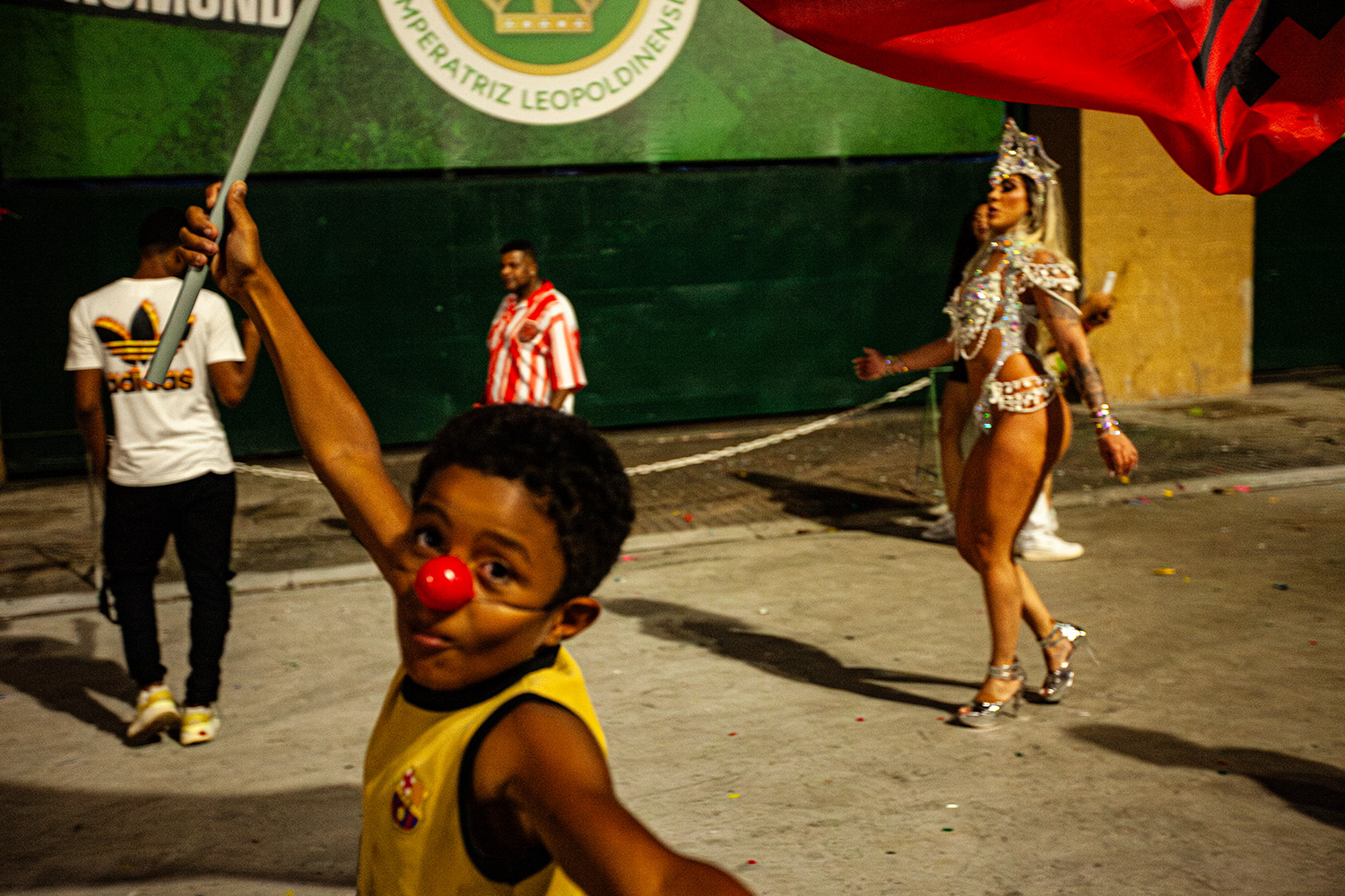 Na Terra de São Jorge is a visual allegory of Rio de Janeiro, where Saint George is syncretized with Ogum, the warrior orixá of Candomblé and Umbanda. Mountains, ocean and forest frame the city, while streets and favelas form its dense urban fabric. Daily life unfolds in tension and celebration. The Cariocas straddle both worlds and choose joy, even as the dragon of inequality lingers, met with courage drawn from faith and festivity. This project maps Rio’s cultural and spiritual soul — carnival, samba schools, sacred rituals — where São Jorge/Ogum embodies protection and resilience, invoked by the marginalized and carried in music. Here, Rio becomes a living theatre, where ancestry, devotion, and celebration converge against the backdrop of concrete and myth.